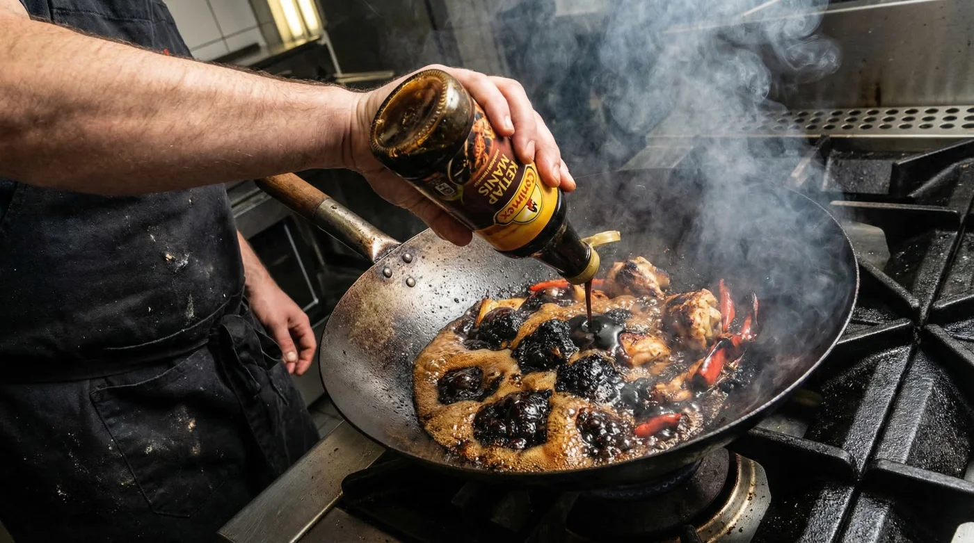 Voor talloze thuiskoks is Conimex Ketjap Manis het absolute fundament van een goed Aziatisch gerecht. Wat veel mensen zich echter niet realiseren, is dat deze saus fundamenteel verschilt van traditionele, dunne sojasauzen. Ketjap manis ontleent zijn stroperige textuur en diepe, rijke smaak aan een extreem hoog gehalte aan melasse en palmsuiker. Wanneer deze suikers in aanraking komen met de verschroeiende hitte van een wokpan, treedt er een onmiddellijke reactie op. In plaats van een gecontroleerde karamellisatie, slaat het proces razendsnel om in pyrolyse, oftewel thermische ontleding. Het resultaat is een laag koolstof op de bodem van uw pan en een bittere aanslag op uw ingrediënten.